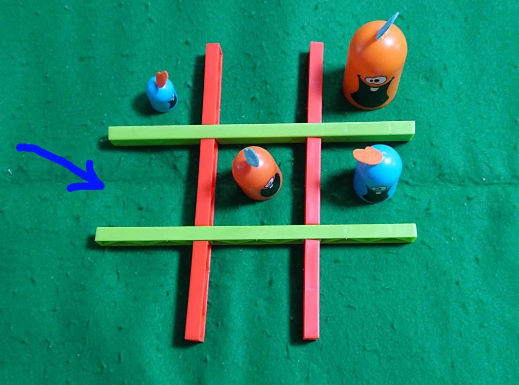 下の写真の場合は、青い矢印の所にオレンジのコマを置きました。