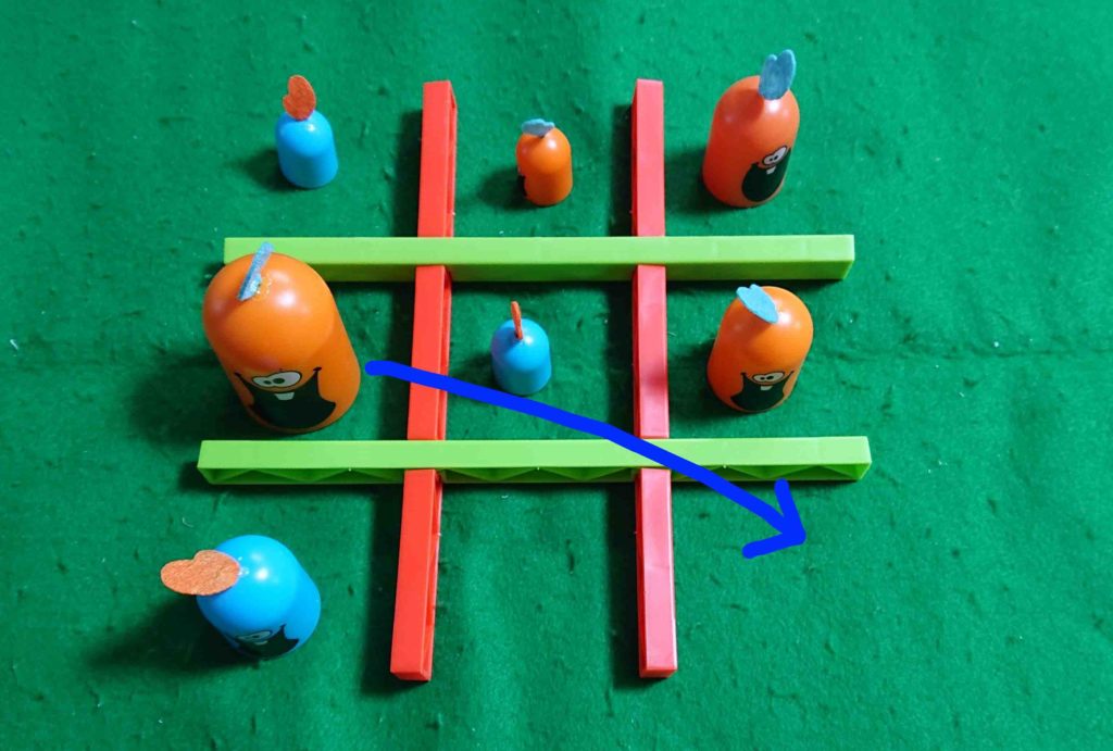 ゲームの目的は縦・横・斜めに一直線上にコマを3個並べることです。