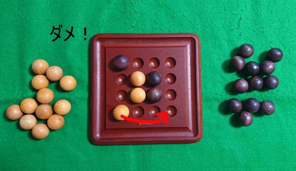 また、自分の手番の時に「球を置くこと」「移動すること」が出来なければ負けです。