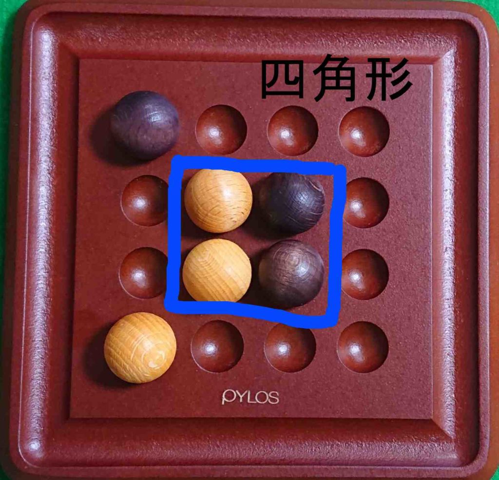 基本的に球を相手より多く持っていればとてもとても有利になります。(相手の球が無くなれば勝利ですから!)よって、上手く自分の色の4角形を作れるようにしていかなければなりません。