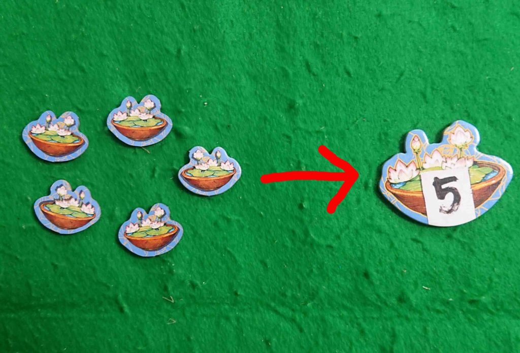 下の写真の場合は、ハス1個とそれ以外の名所トークンを2個を獲得出来ます。