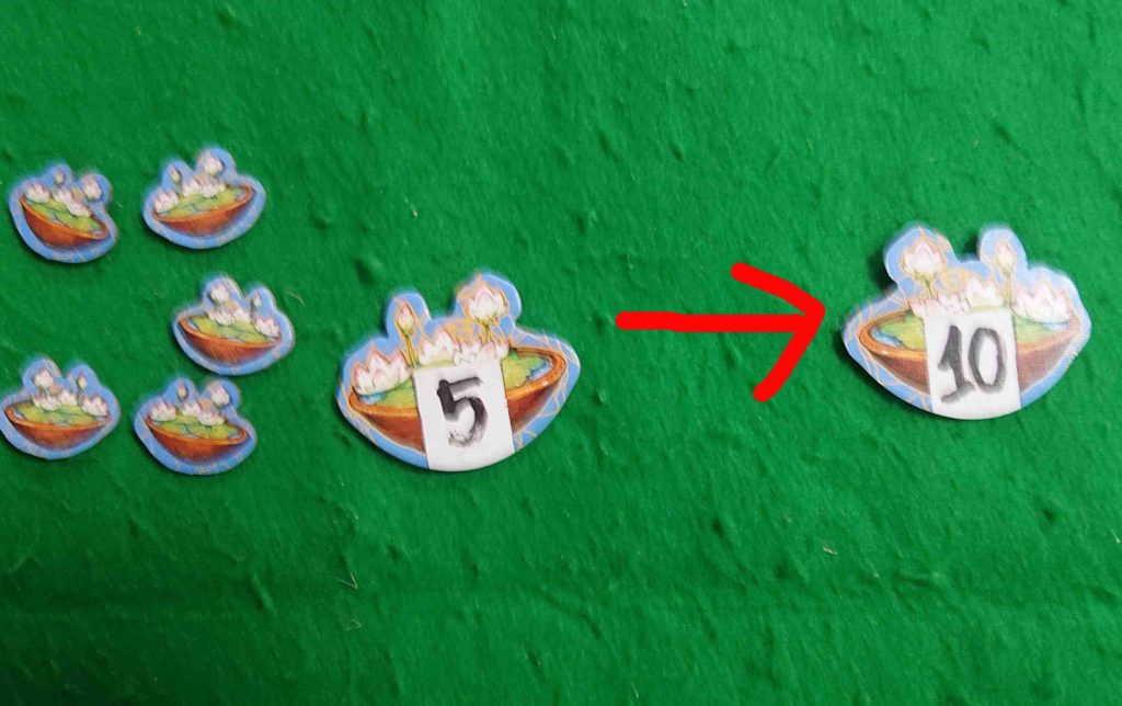 再び名所トークン(小)を獲得したら、直ちに名所トークン(大)を裏返して10の数字の面にします。