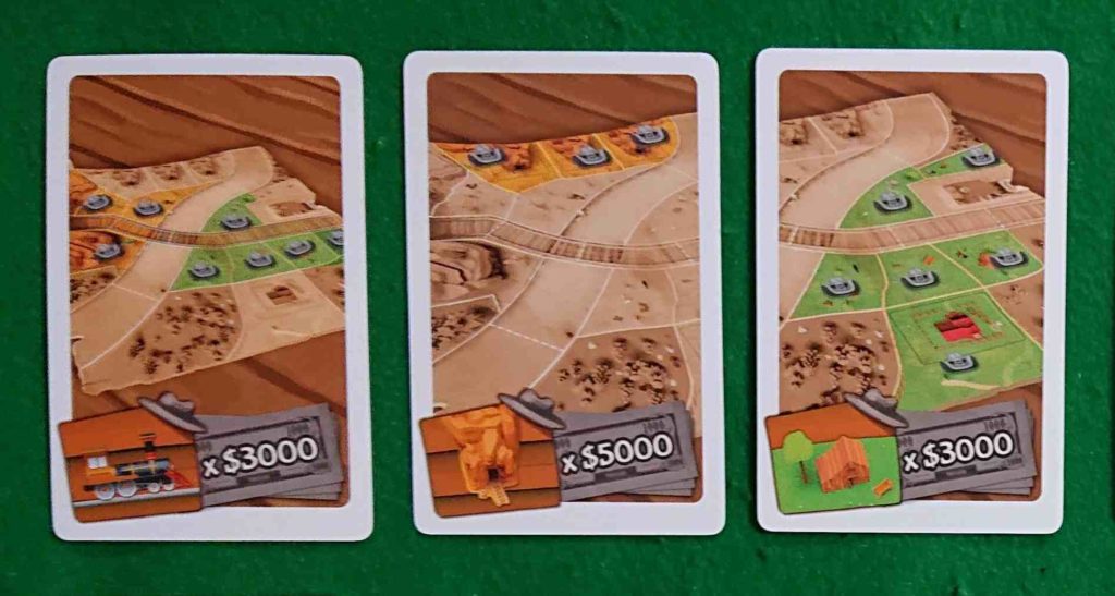 下の写真の場合、左から、「線路マスと隣接している区画1つにつき3000$」・「鉱山1区画につき5000$」・「草原1区画につき3000$」