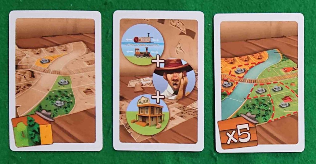 鉱山カード5枚から3枚・牧場カード3枚から1枚をランダムに裏向きで選びます。残りのカード見ないで箱にしまいます。