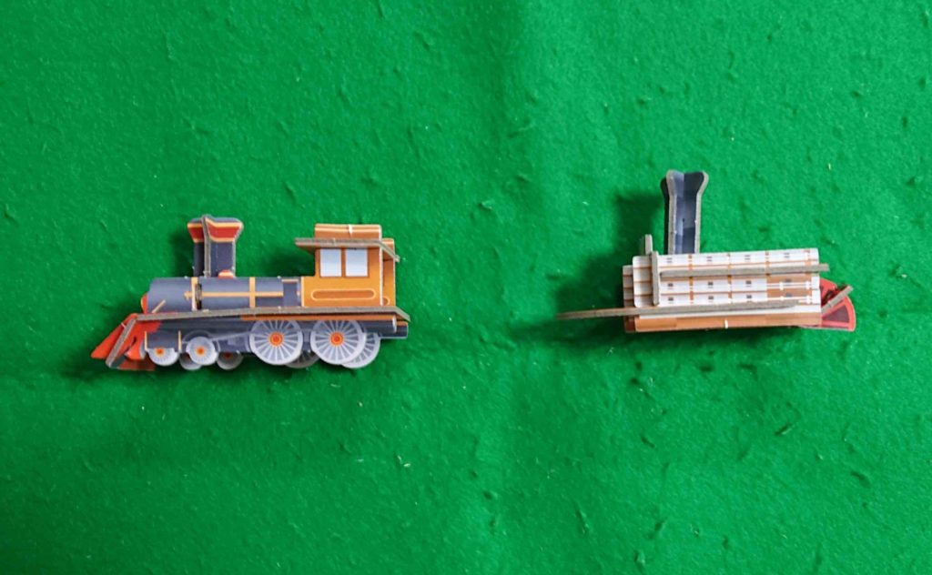 機関車コマまたは船コマのどちらかを選び、好きな位置に移動出来ます(移動しなくても可)。隣接している区画に帽子トークンがあるプレイヤーは1区画につきお札1枚を獲得出来ます。