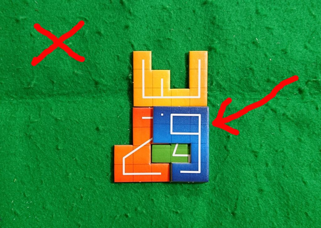 タイルは必ず1個の他のタイルと辺が接するように配置します(接しているのは1部分で可)。