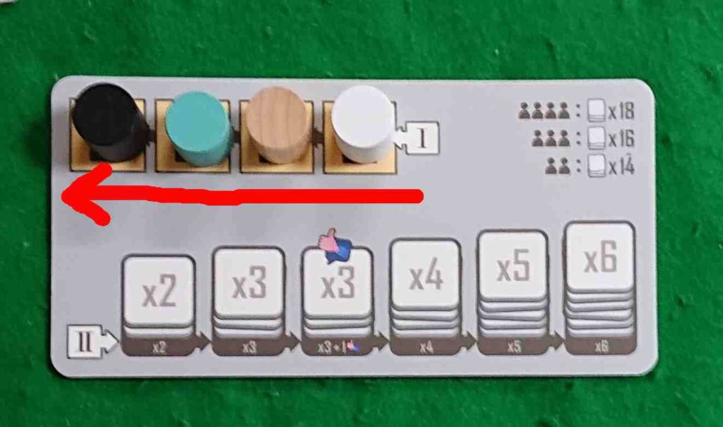 タイルの獲得が終了したら自分の木製コマを上のⅠの左から順番に置いていきます。