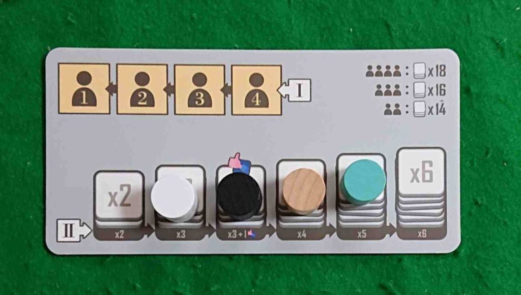 最初のラウンドは適当に順番を決めてアクションボードの上のⅠの所に左から木製コマを置きます。