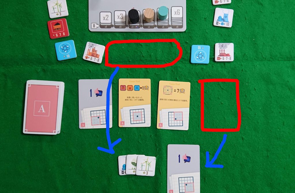 原子力発電所タイルの場合は燃料タイルに加えて核廃棄施設タイルもプレイヤーボード上に配置しなければなりません。