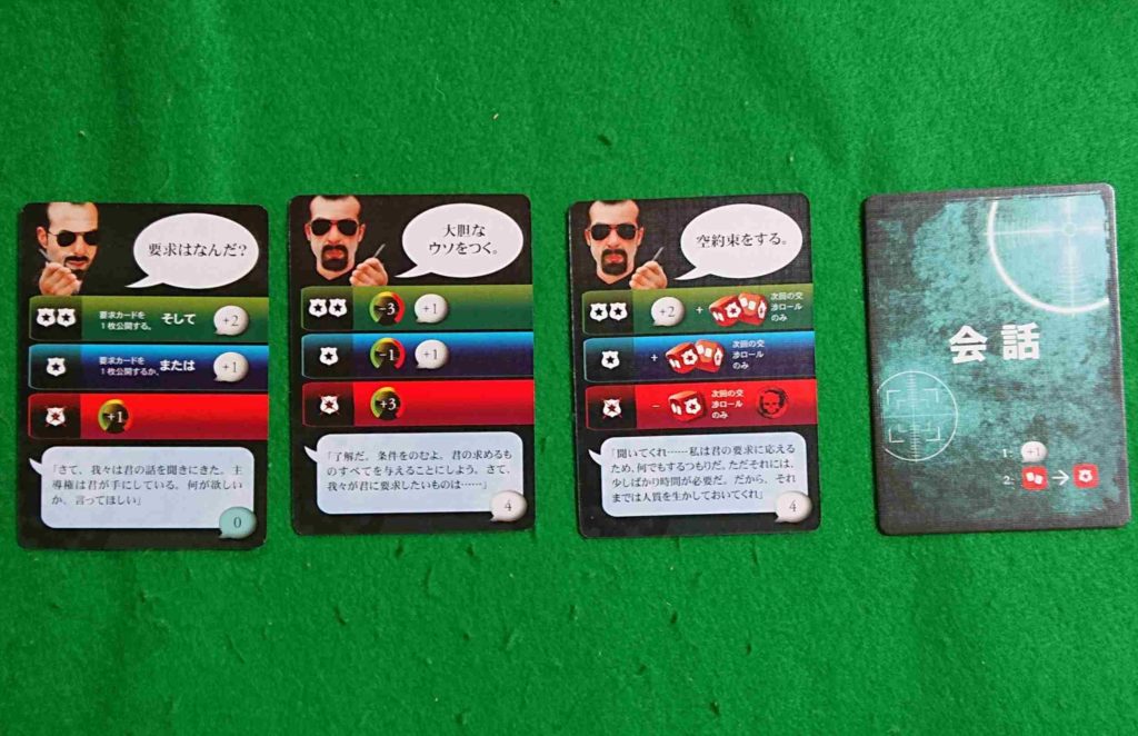 会話カードです、このカードを毎回出すことによって犯人と交渉します。